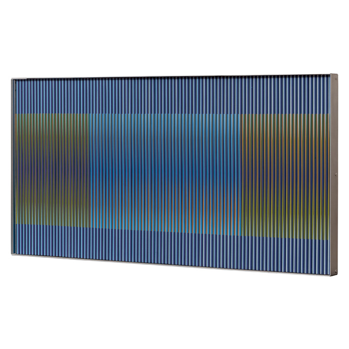 To date Cruz-Diez has been featured in 1544 collective exhibitions, 351 solo exhibitions, has constructed 177 architectural works, received 78 awards, created 101 ephemeral events and has works on display in the permanent collection of 96 museums. All of which in 70 countries, and counting.