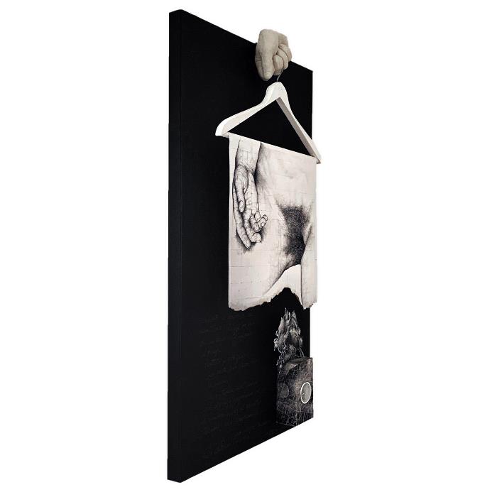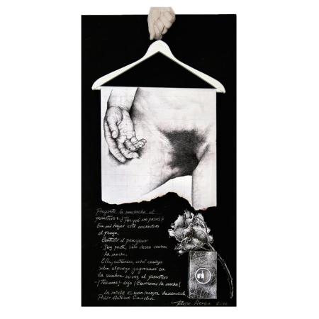 Starting nineties Drawings series begins - boxes in which he dedicated himself harder, in experimenting with various materials (wood , plaster , glass, resin , sand , iron, in addition to ready-made objects like knives , chains and watches , etc.) , forming a mixed technique which highlights certain reasons serialized and subdivision and fragmentation of space. A plural surprising and intricate construction which has already been removed in some way , simply dimensional space and again suggests now more patent, the three-dimensional space with their assemblies and sculptural volumes that extend in the drawing, its objects and geometric figures that populate elaborate frames inside the work , pieces of wood, which are evidence of their explorations with space. In his last solo exhibition at the Art Gallery of USB ( " Hierophany : porch and mirror ", 1997 ) , Herrera presents a set of construction - assembly by way of a large facility which, according to the artist, represent a milestone in their production. The central theme that develops here is a confession of faith , represents the purification of a latent thought that has been present in his work. The Christian symbolism is taken by him from his essence. However, maintaining the symbolic richness observed in archetypal elements that have always accompanied . At times , besides the repeated recourse to continue drawing a sculptural volume , Herrera seems to return to proper volumes sculptural as well , an angel wings are made with metals drawn soldiers. This relationship drawing -sculpture , sculpture - drawing are the two poles that have occupied much of his artistic proposal , is , moreover , a test of conceptual soundness .